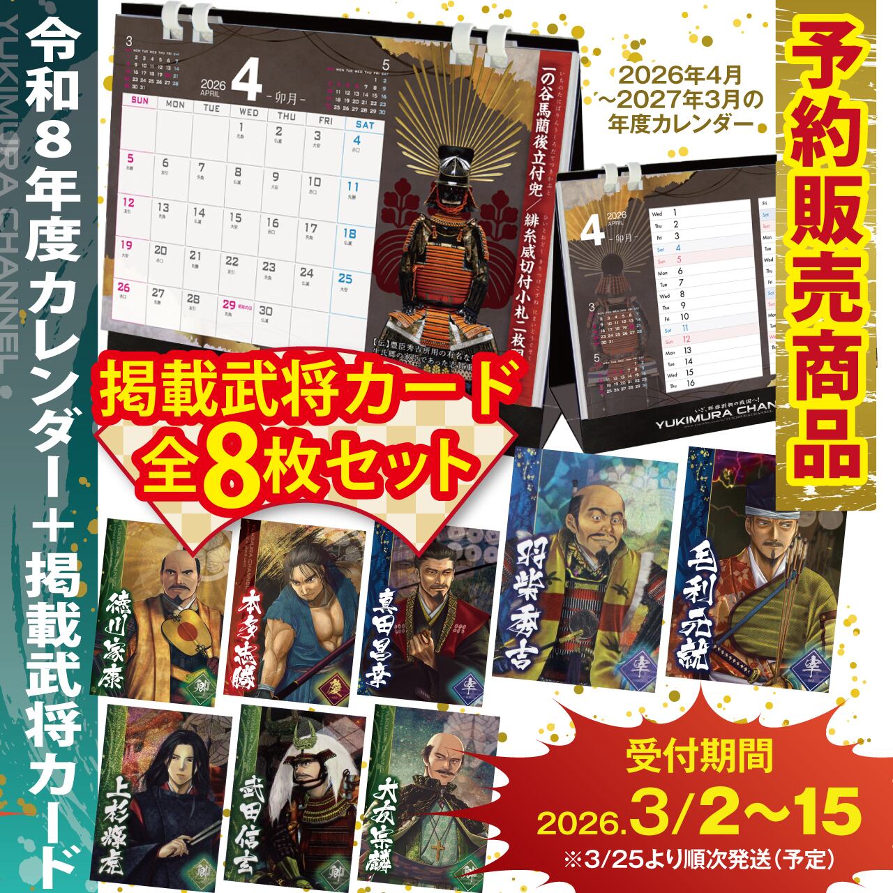【予約販売商品】2026年度版 卓上カレンダー+掲載武将カード8枚セット