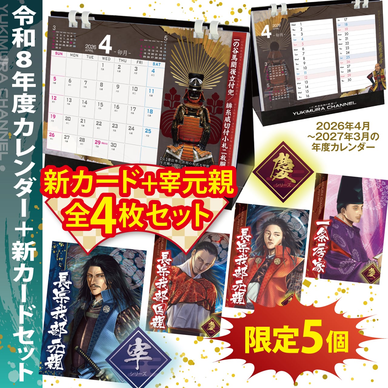 【予備分販売】2026年度版 卓上カレンダー+新カード3枚+宰 元親セット